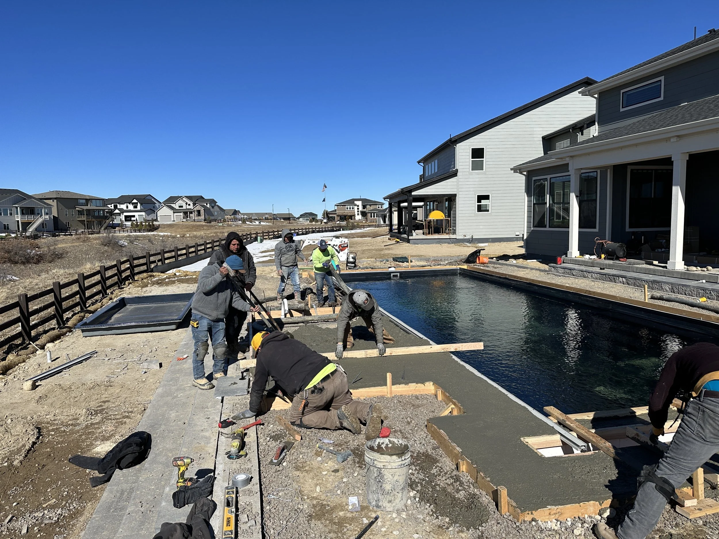 In Parker, CO, this phase also includes evaluating your property. Many neighborhoods have HOA requirements that influence pool placement, fencing, and design. Additionally, factors like slope, drainage, and sun exposure all play a role in where your pool should go.